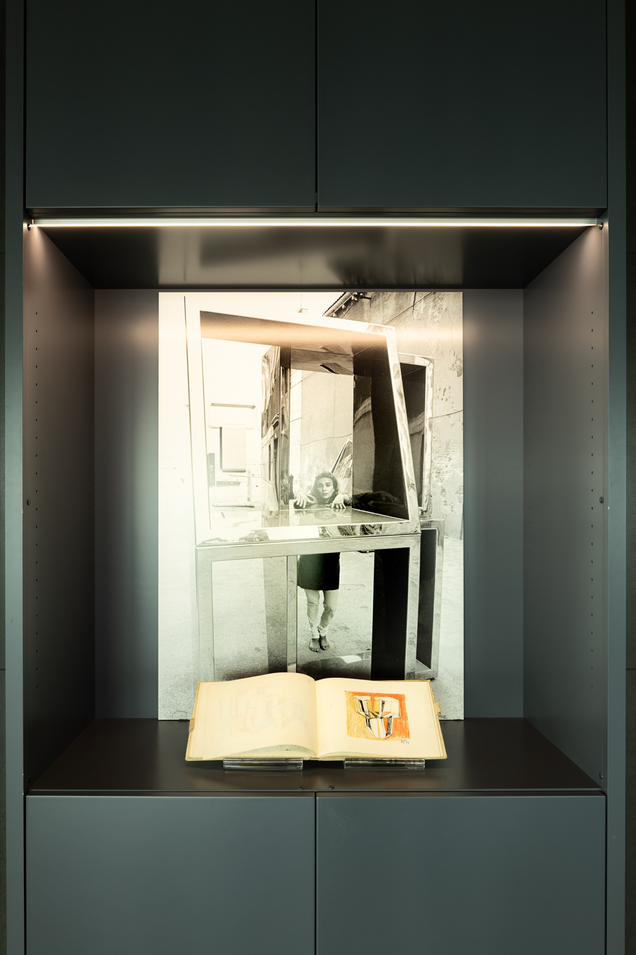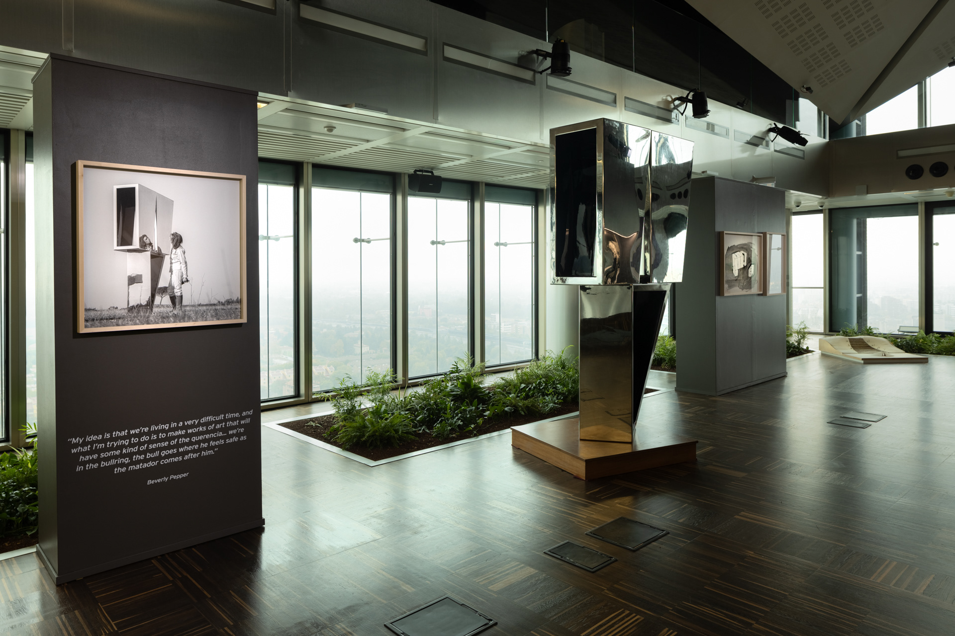 This photographic documentation captures the evocative atmosphere of the exhibition dedicated to Beverly Pepper, curated at CUBO Unipol’s Bologna headquarters.